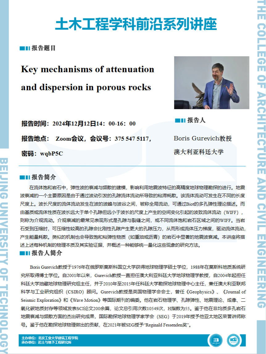【建工 | 学术报告】土木工程学科前沿系列讲座——Key mechanisms of attenuation and dispersion in porous rocks