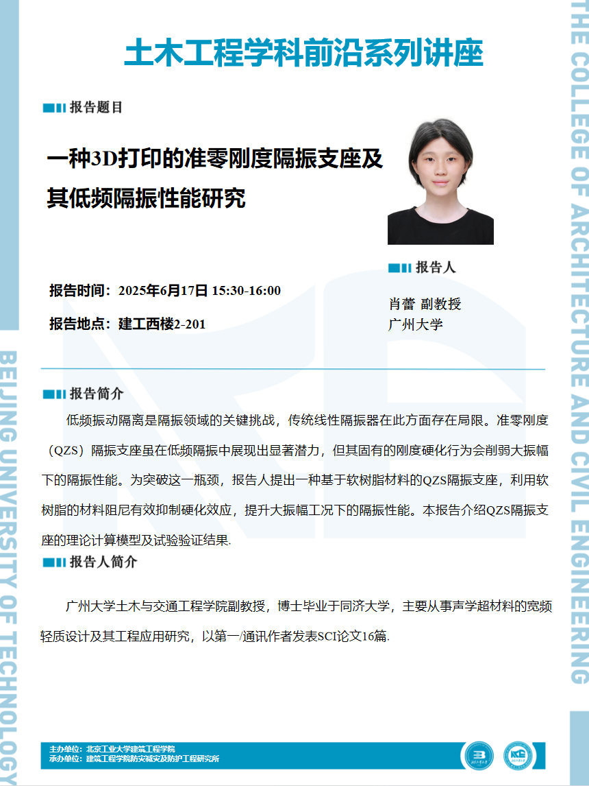 下一条:【建工 | 学术报告】土木工程学科前沿系列讲座——Analysis and experiments of Linear and Nonlinear Metastructures for seismic protection of industrial structures