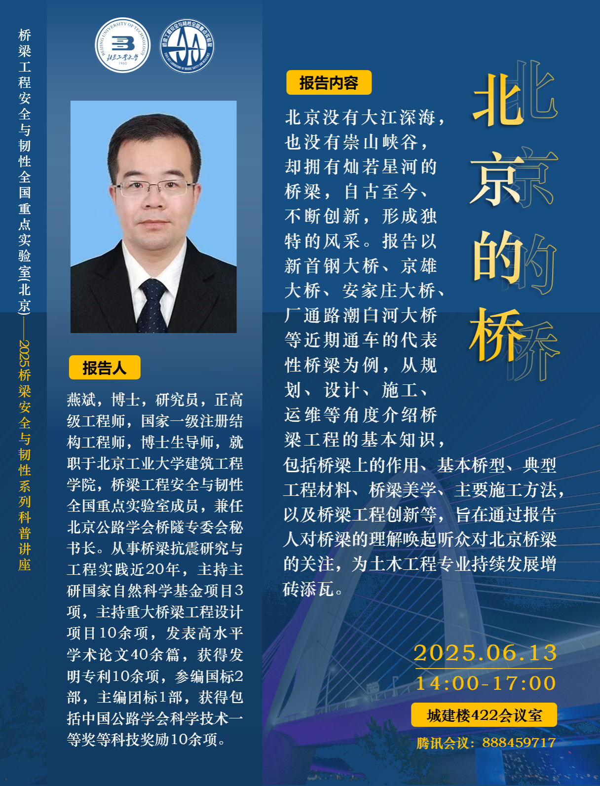 【建工 | 学术报告】2025桥梁安全与韧性系列科普讲座——北京的桥