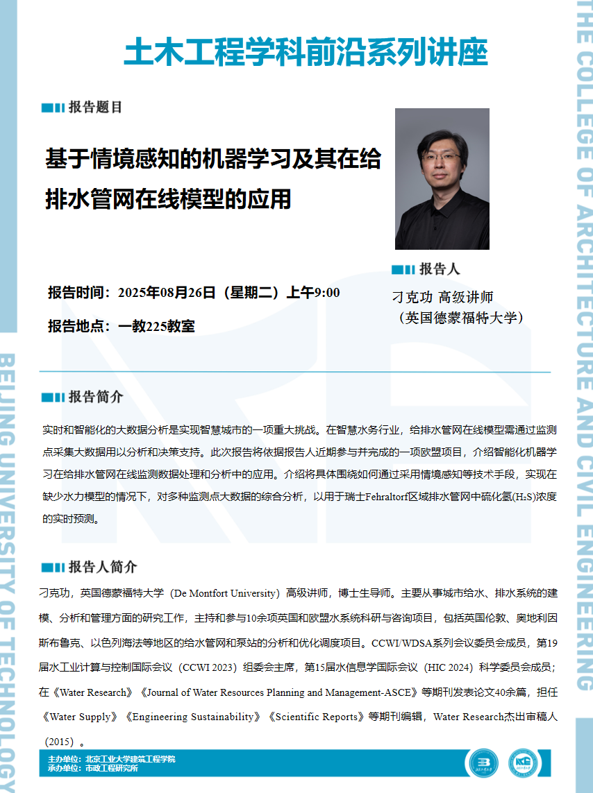 上一条:【建工 | 学术报告】土木工程学科前沿系列云讲座——Systemic Seismic Vulnerability and Risk Analysis for Lifeline Networks and Infrastructures