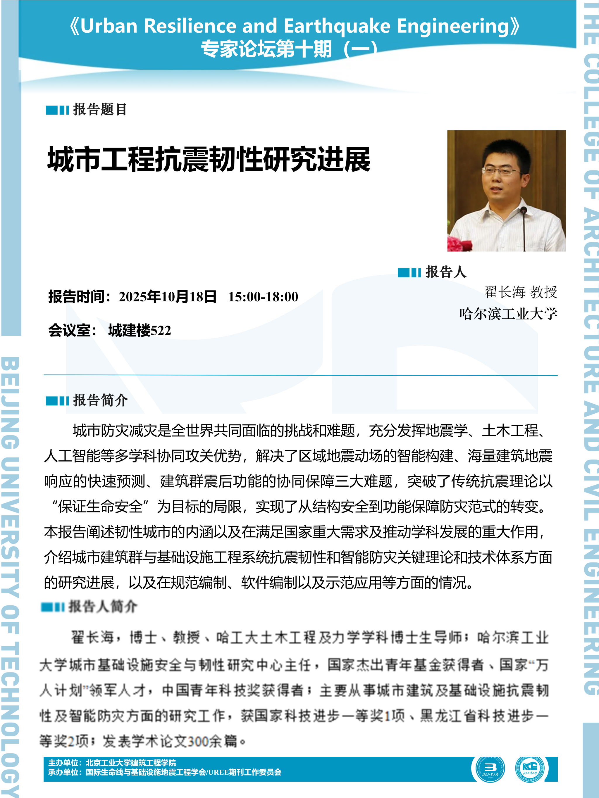 上一条:【建工 | 学术报告】《Urban Resilience and Earthquake Engineering》专家论坛第十期(二)——自复位构件及结构抗震性能与韧性