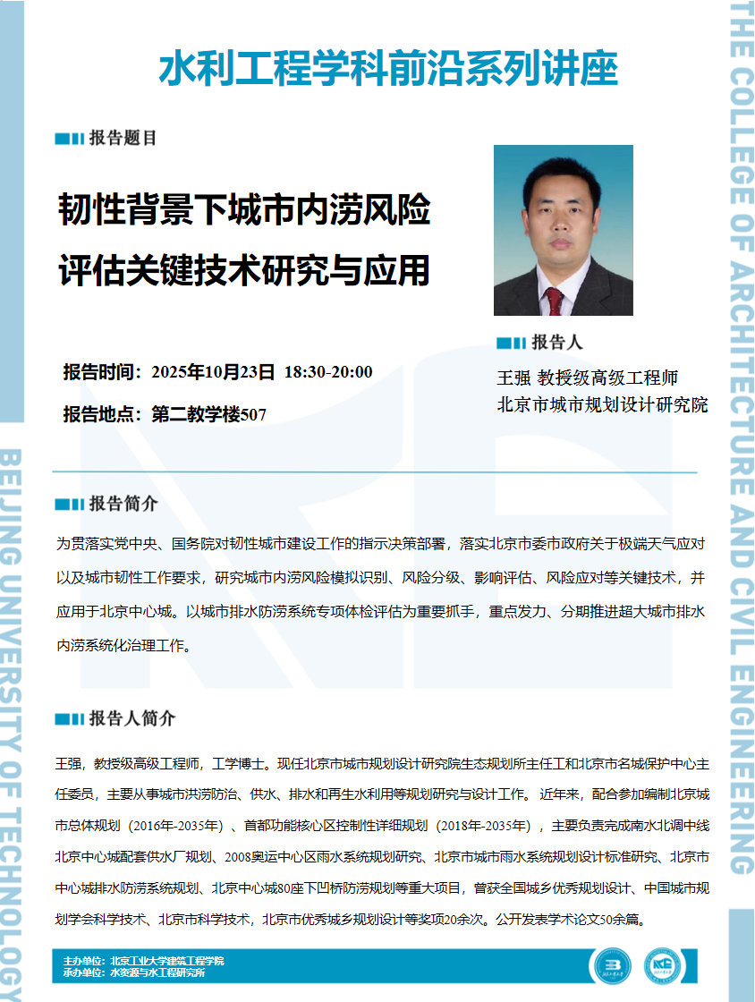 上一条:【建工 | 学术报告】土木工程学科前沿系列讲座——Risk-based approach in Geotechnical Engineering