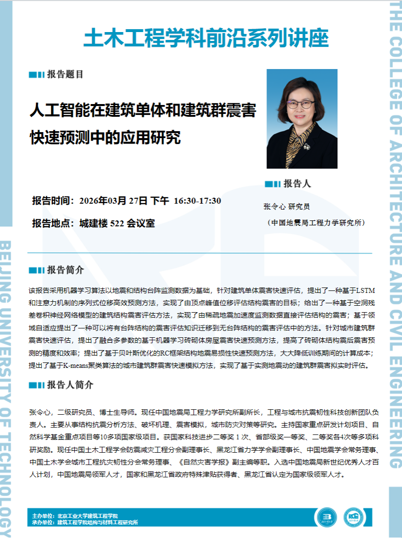 上一条:【建工 | 学术报告】土木工程学科前沿系列讲座——基于傅里叶谱框架的多指标地震动联合概率危险性分析与滑坡、场地液化风险评估
