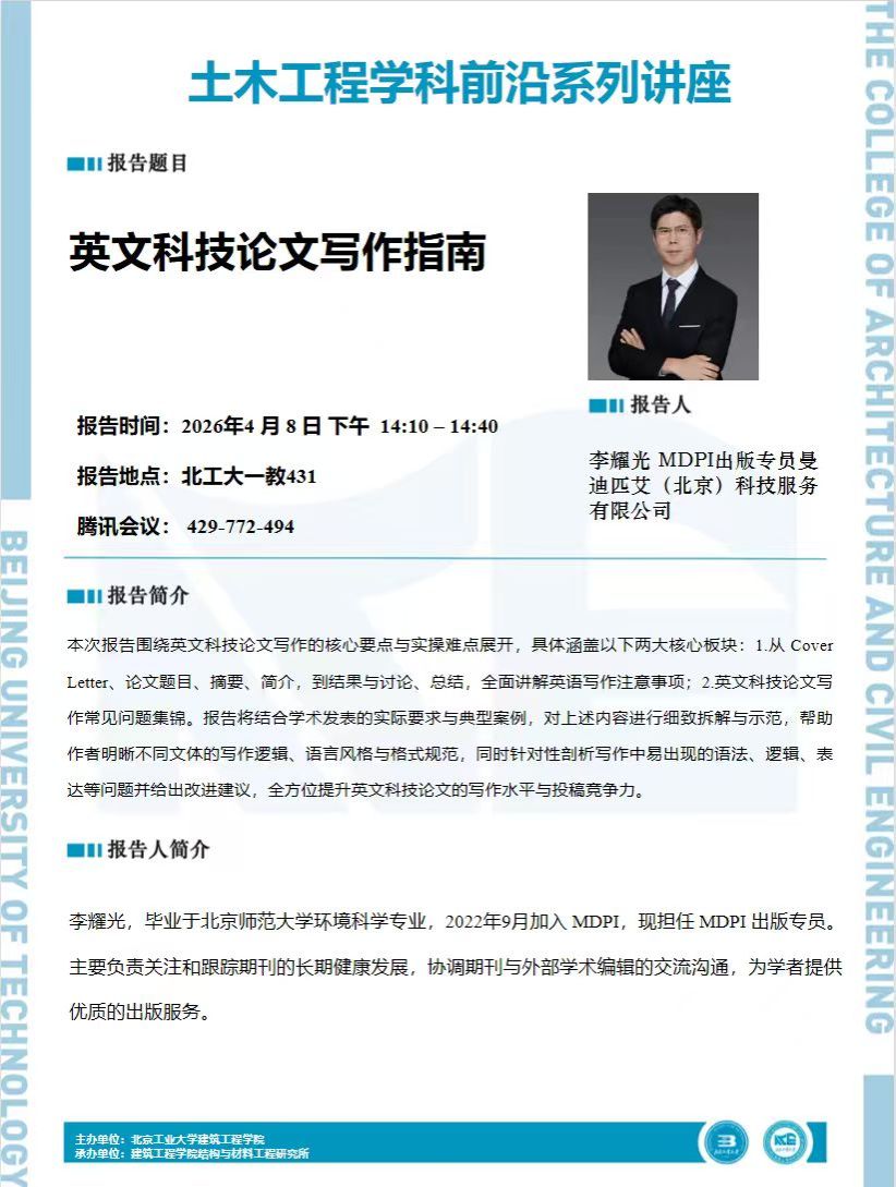 上一条:【建工 | 学术报告】土木工程学科前沿系列讲座——科技论文的图表制作指南