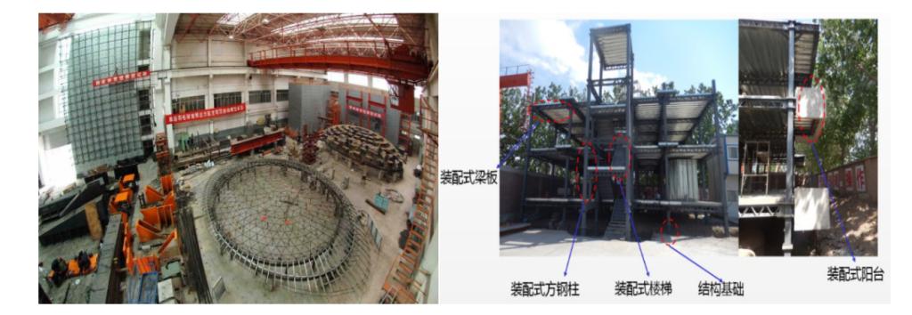 研发了一批装配式钢结构建筑新体系。该类建筑体系由工厂流水线生产的标准化模块现场拼装,能够实现标准化设计、工厂化生产、装配化施工,有效地缩短工期,减小劳动强度,降低造价,降低对环境的影响。以国家自然科学基金资助项目和国家重点研发计划项目为基础,提出了模块化装配式角钢桁架梁-方管柱高层钢结构等一批装配式钢结构新体系,基于样板工程,进行了体系组成、有限元分析和模型试验研究,系统研究了体系的力学性能和抗震性能。与远大可建公司合作研究并建成了我国第一个实现快速装配化的高层住宅建筑。本中心在新型装配式钢结构体系的研究为装配式钢结构住宅在我国的快速发展提供强有力的支撑。