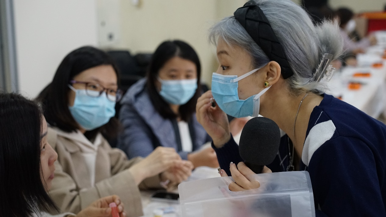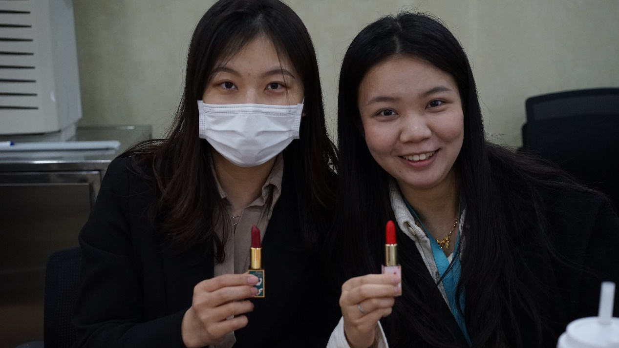 女教师们认真制作口红中