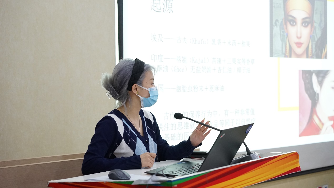 指导老师首先为大家介绍植物口红的概念、唇部皮肤特点,以及不同成分制作的口红品质与使用效果。随后,又向大家介绍了手工口红所选用的主要材料及操作要领等。