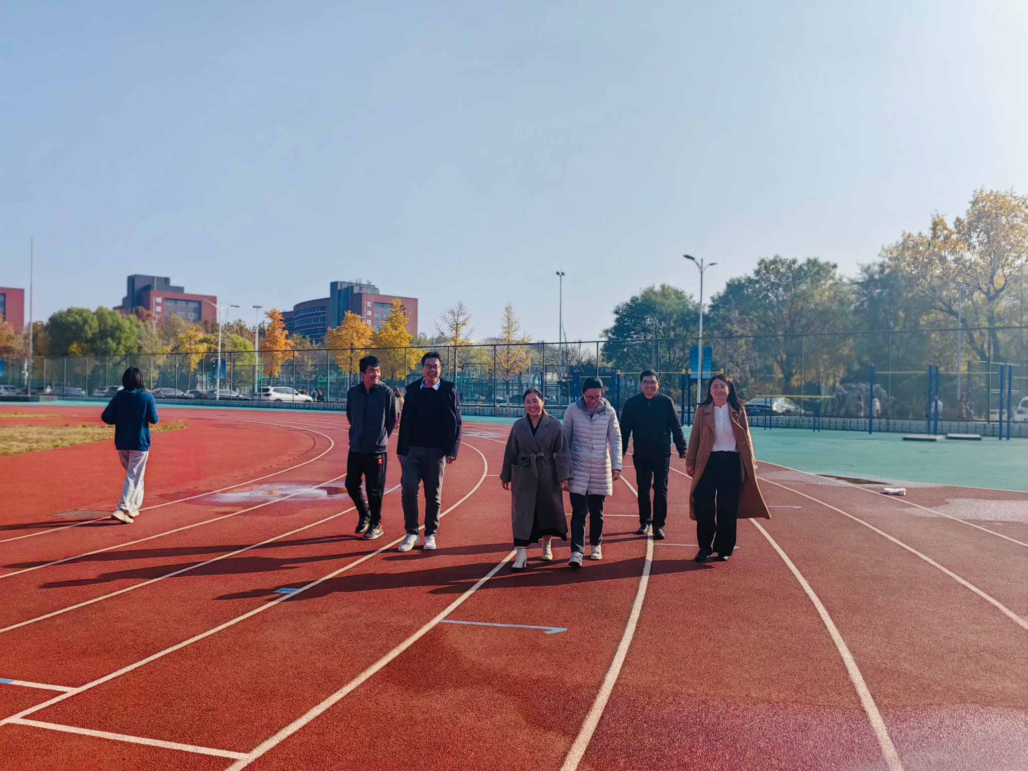 老师们暂别繁重的教学科研任务,置身于校园秋日美景之中,呼吸着清新的空气,精神饱满的开启健康之行。途中还有老师驻足在校园中金黄的银杏树下拍照留念,记录美好时刻,留下难忘身影,为校园增添了一道道亮丽的风景线。