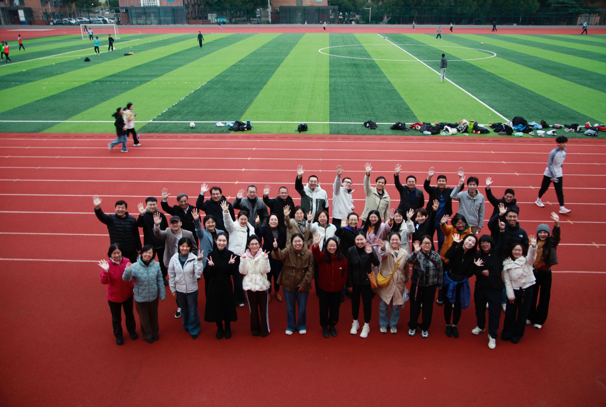 跑道上,不同年龄段的教职工们有序出发,并肩前行,轻快的脚步声、爽朗的笑声交织在一起,形成了一道独特的风景线。老师们纷纷表示“平时总在办公室改论文、备课件,久坐久站落下不少小毛病,这样的集体跑步活动特别好,既能活动筋骨,还能和同事们多聊聊。”