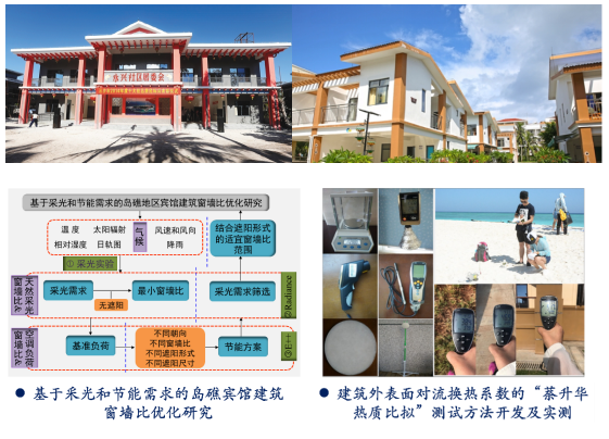 刘加平院士团队承担国家自然科学基金重大项目“极端热湿气候区超低能耗建筑研究”及国家重点研发计划课题“海洋气候条件建筑节能设计计算参数”,建立可支撑海岛建筑节能设计的室内外计算参数集,为我国开辟新的极端热湿气候区建筑热工设计分区奠定科学基础。