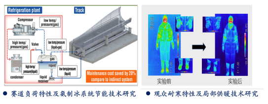 陈超教授团队结合相变蓄热技术研究成果,开展关于2022年北京冬奥会三大赛区观众露天观赛局部热舒适条件改善技术研究。王伟教授团队结合空气源热泵技术研究成果,开展关于2022年北京冬奥会延庆赛区人工赛道制冰系统调控技术研究。承担国家重点研究计划“科技冬奥”重点专项“人工剖面赛道类场馆新型建造、维护与运营技术(2018YFF0300200)”2项子课题研究任务,为北京2022年冬奥会雪车雪橇赛道制冰系统节能运行、营造观众席舒适热环境提供关键技术支撑。